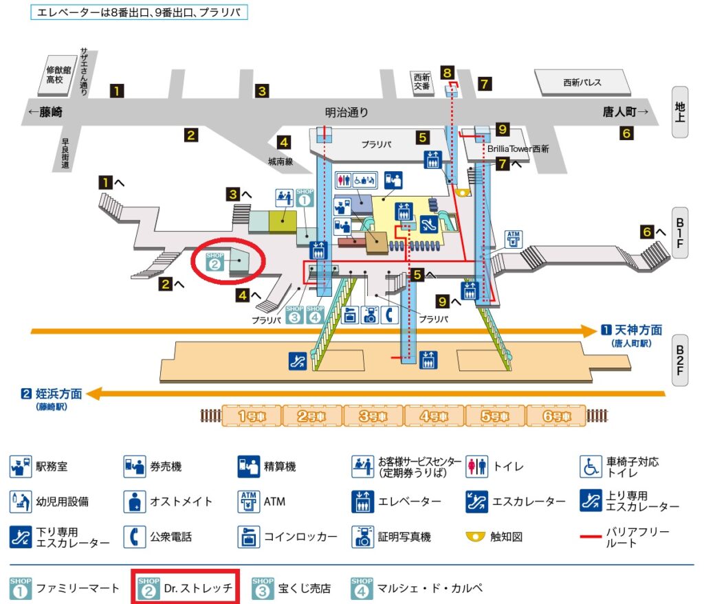 ドクターストレッチ(Dr.stretch) 西新店は駅構内にあり、アクセスの良さが大きな魅力です。